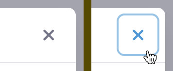 모달 닫기 버튼의 클릭 가능한 영역을 보여주는 좌우 비교.