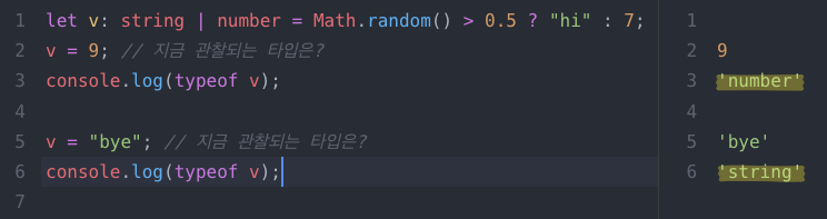 let v: string | number = Math.random() > 0.5 ? "hi" : 7;