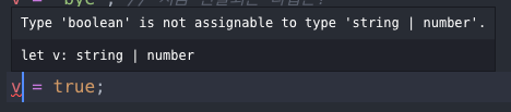 boolean이string | number타입에 포함되지 않으므로 오류가 발생한다.